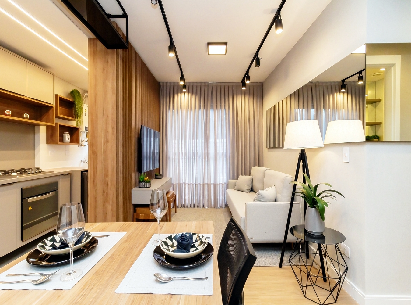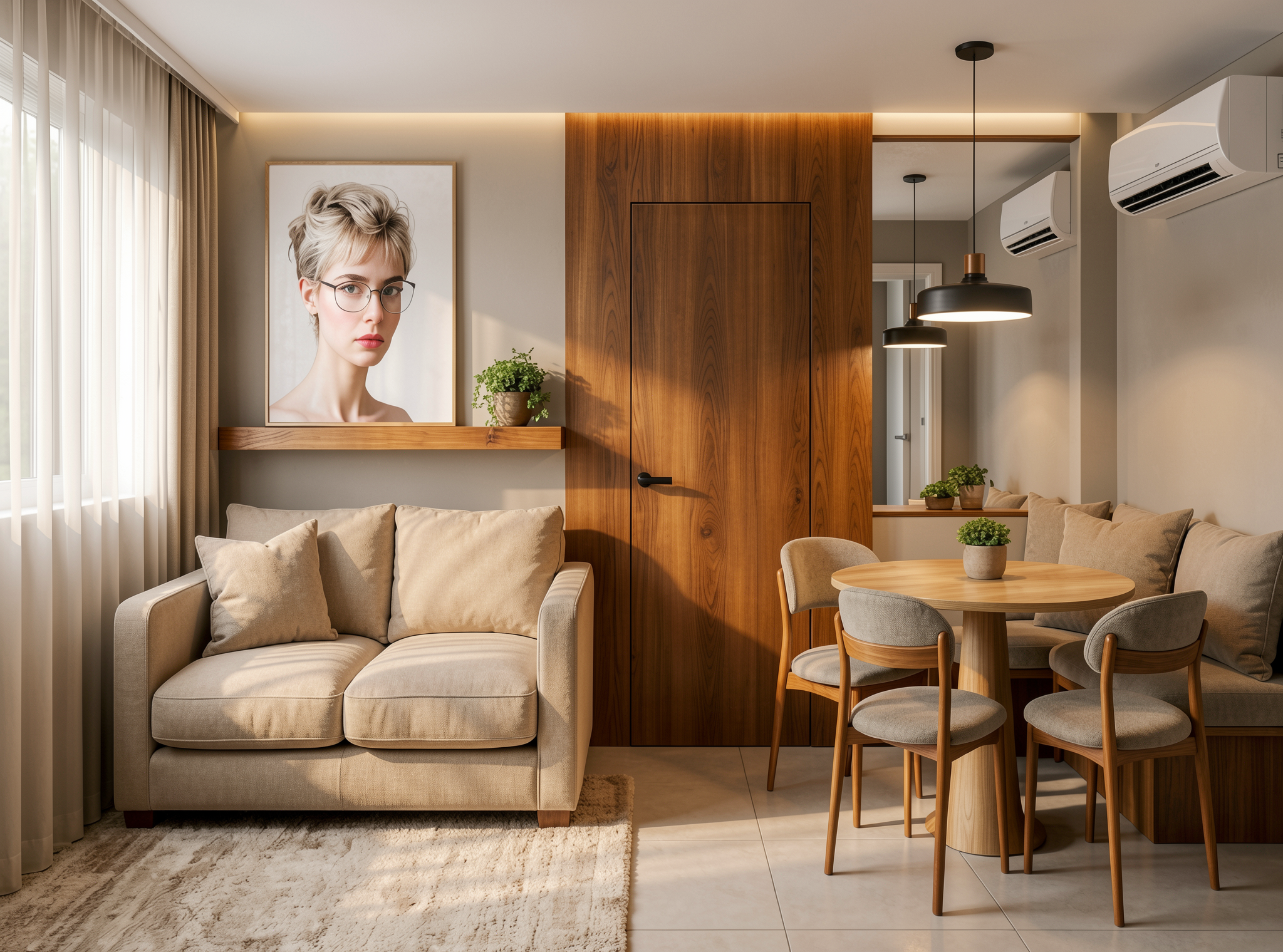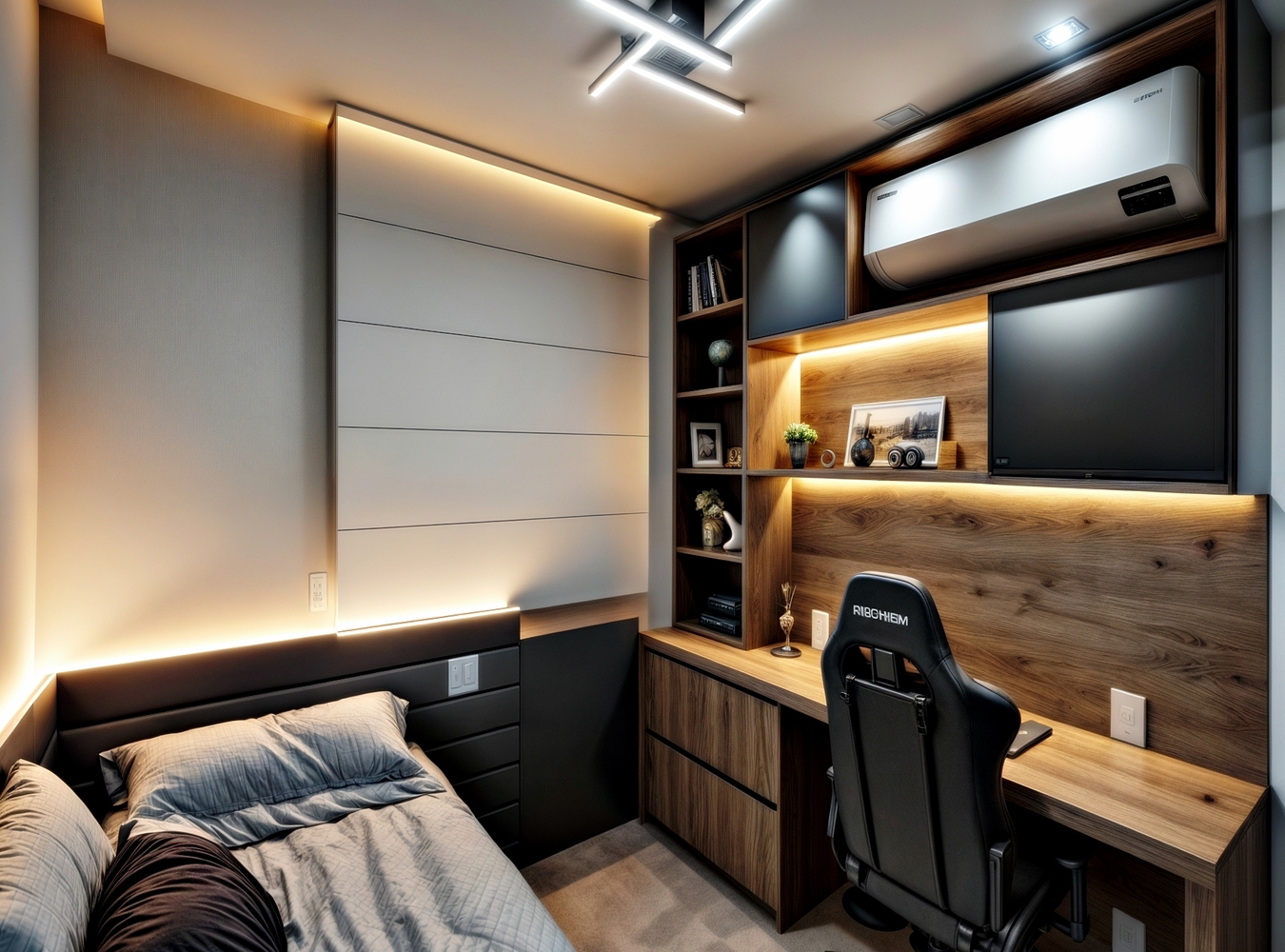 Desenvolvimento completo para pequenos ambientes, com soluções inteligentes de layout, mobiliário, iluminação e materiais duráveis, criando espaços funcionais, organizados e esteticamente coerentes.